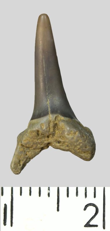 Зуб. Акула. Eostriatolamia sp. Классификация: Хордовые Chordata, Позвоночные Vertebrata, Хрящевые рыбы Chondrichthyes, Пластиножаберные Elasmobranchii