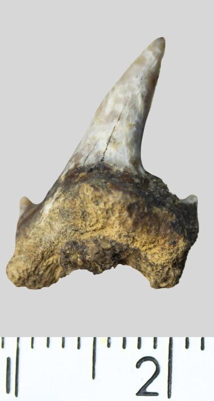 Зуб. Акула. Archaeolamna sp. Классификация: Хордовые Chordata, Позвоночные Vertebrata, Хрящевые рыбы Chondrichthyes, Пластиножаберные Elasmobranchii