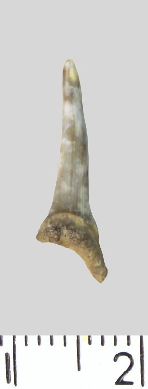 Зуб. Акула. Scapanorhynchus sp. Классификация: Хордовые Chordata, Позвоночные Vertebrata, Хрящевые рыбы Chondrichthyes, Пластиножаберные Elasmobranchii