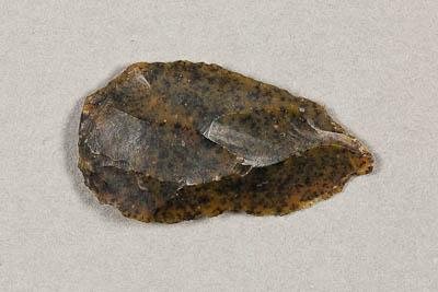 Камень рыжевато-полупрозрачного цвета с дендритами чёрного цвета.