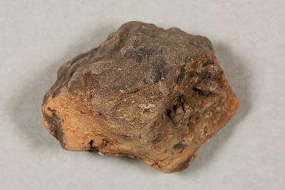 Фрагмент сосуда терракотого цвета снаружи и тёмно-серого внутри.