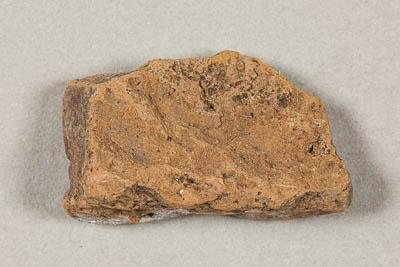 Фрагмент сосуда терракотого цвета снаружи и бело-серого внутри.