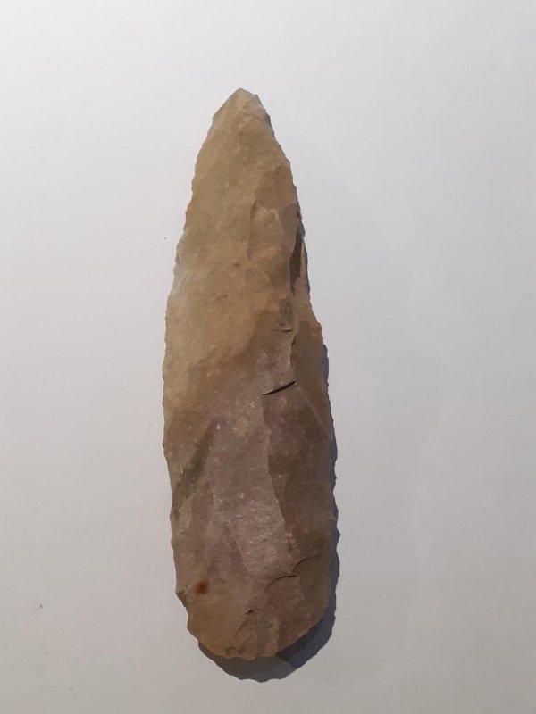 Долото изготовлено из кремня светло-коричневого цвета.