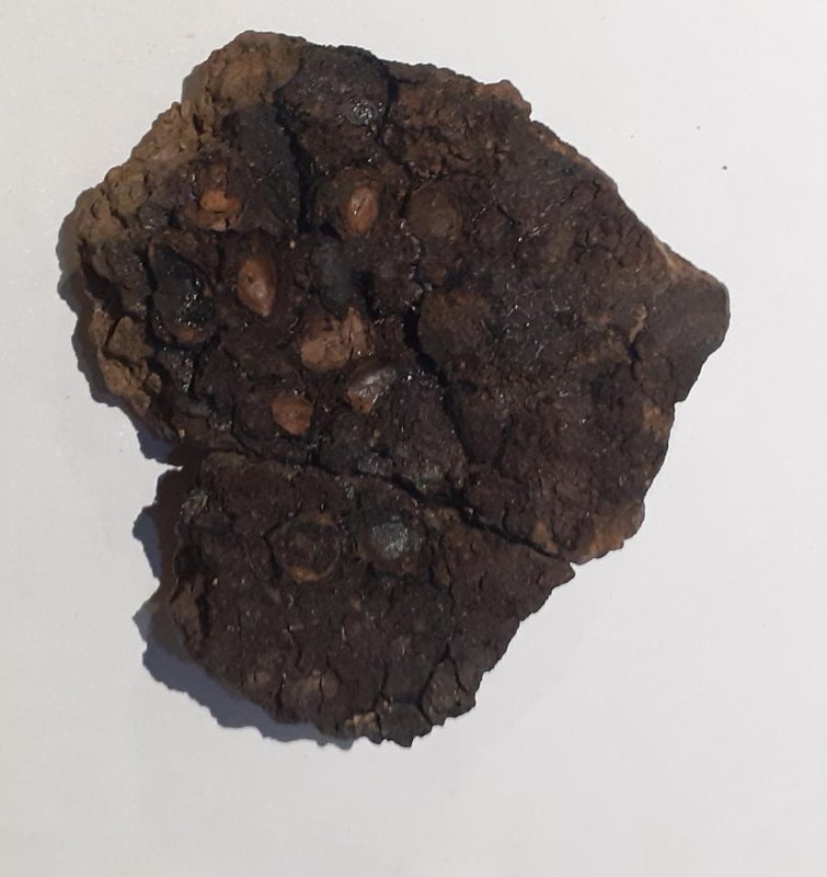 Фрагмент сосуда серо-коричневого цвета снаружи и тёмно-серого цвета внутри.