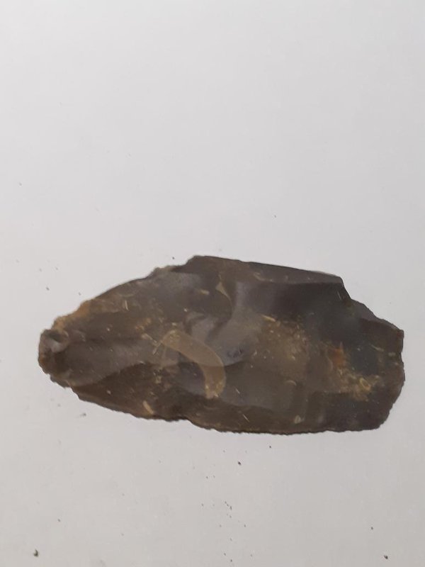 Кремнёвое орудие серо-коричневого цвета.