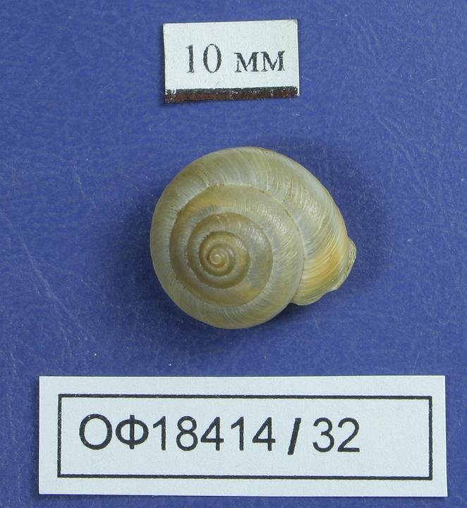 Наземный моллюск. Euomphalia strigella (Draparnaud, 1801), Hygromiidae. Классификация: Моллюски Mollusca, Брюхоногие Gastropoda