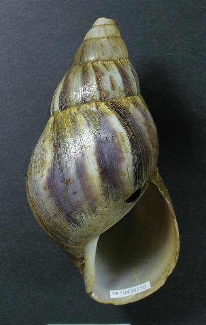 наземный брюхоногий моллюск. Achatina fulica Bowdich, 1822, Achatinidae. Классификация: Моллюски Mollusca, Брюхоногие Gastropoda