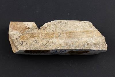 Отпечаток членистого стебля со скульптурой в виде поперечных ребрышек на субстрате. После узлов ребрышки продолжаются без смещения. Субстрат представлен мергелем бежевого цвета.