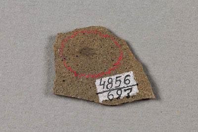 Изолированная семенная чешуя на субстрате. Хвойное. Pseudovoltzia sp. Классификация: Растения Plantae, Голосемянные Gymnospermae, Хвойные Pinopsida, Вольтзиобразные Voltziales, Вольтзиевые Voltziaceae, Хвойное Pseudovoltzia sp.
