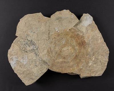 Отпечаток раковины с залеченными следами укуса геликоприона (Helicoprion bessonowi). Аммонит. Uraloceras sp. Классификация: Моллюски Mollusca, Головоногие моллюски Cephalopoda, Аммониты Ammonoidea, Парагастриоцерасовые Paragastrioceratidae, Аммонит Uraloceras sp.