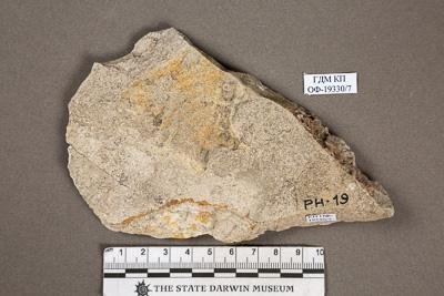 ПАРАТИП. Отпечаток опистосомы в породе. Мечехвост. Paleolimulus kunguricus Naugolnykh, 2017. Классификация: Членистоногие Arthropoda, Меростомовые (подтип Chelicerata) Merostomata, Xiphosurida, Paleolimulidae, Мечехвост Paleolimulus kunguricus Naugolnykh, 2017