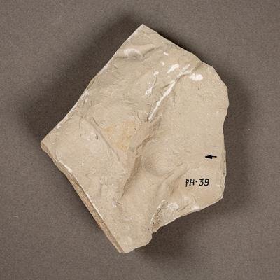 Отпечаток следа мечехвоста. Порода представлена мергелем светло-бежевым.