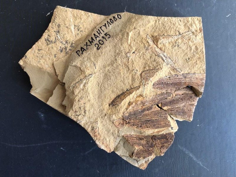 Отпечаток листьев на мергеле. Семенной папоротник. Praephylladoderma leptoderma Naugolnykh, 2007. Классификация: Растения Plantae, Голосемянные Gymnospermae, Пельтаспермообразные Peltaspermopsida, Пельтаспермовидные Peltaspermales, Ангаропельтовые Angaropeltaceae, Семенной папоротник Praephylladoderma leptoderma Naugolnykh, 2007
