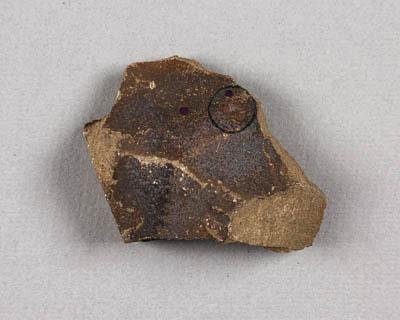 Отпечаток семязачатка хвойного на породе. Порода представлена плотным алевролитом бежевого цвета на свежем сколе, серовато-бежевого на выветрелой поверхности.