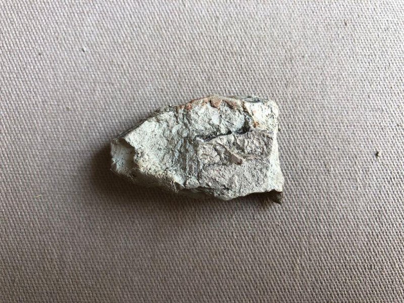 Образец неправильной формы. На нем сохранился обызвествленный остаток мегаспорофилла. Цвет породы зеленовато-серый. Порода представлена обызвествленным алевролитом.