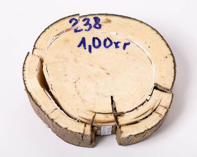 натура; пропитка (ПВА); спил; полировка (Хорошая с одной стороны, плохая с противоположной стороны.); проба на радиоуглеродный анализ (?)