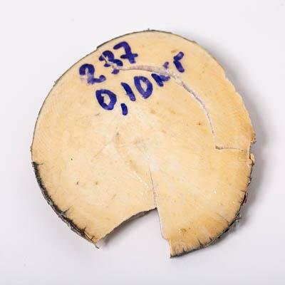 натура; пропитка (ПВА); спил; полировка (Хорошая с одной стороны, плохая с противоположной стороны.); проба на радиоуглеродный анализ
