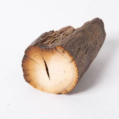 Односторонний поперечный срез (спил) бивня мамонта, округлый в сечении, молочно-белый в середине - темно-коричневый у краев. Частично сохранилась внешняя поверхность бивня, окраска кпасновато-коричневая. Бивень рассохся. Поверхность спила полирована. На спиле четко различимы линии Шрегера. Облом неровный, искуственный.