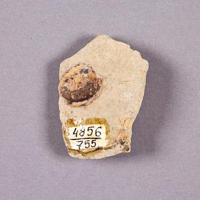 ПАРАТИП. Изолированное семя на породе. Гинкговое. Ovalocarpus ovoides Naugolnykh, 2018. Классификация: Растения Plantae, Голосемянные Gymnospermae, Гингковые Ginkgoopsida, Гингковые Ginkgoales, Cheirocladaceae, Гинкговое Ovalocarpus ovoides Naugolnykh, 2018