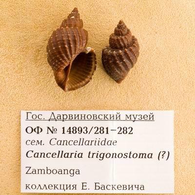 Морской брюхоногий моллюск. Cancellaria trigonostoma. Классификация: Моллюски Mollusca, Брюхоногие Gastropoda, Neogastropoda, Cancellariidae