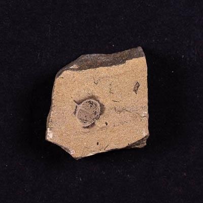 Отпечаток семени хвойного на породе. Крылатка узкая. Порода представлена плотным алевролитом бежевого цвета.