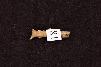 Фрагмент иглы. Морской ёж. Rhabdocidaris spathulata (Auerbach,1844). Классификация: Иглокожие Echinodermata, Морские ежи Echinoidea, Cidaridae, Морской ёж Rhabdocidaris spathulata (Auerbach,1844)