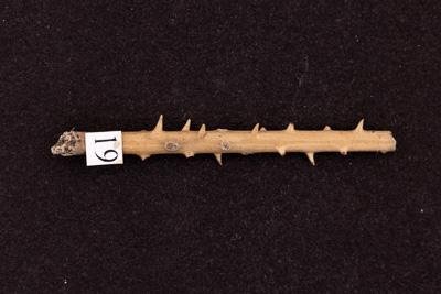 Осевая часть иглы округлая в сечении, шипики направлены не упорядоченно во все стороны. Поверхность иглы гладкая. Цвет иглы молочно-белый и серый.