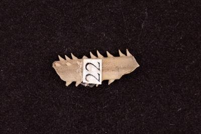 Фрагмент иглы. Морской ёж. Rhabdocidaris anceps (Rouiller, 1847). Классификация: Иглокожие Echinodermata, Морские ежи Echinoidea, Cidaridae, Морской еж Rhabdocidaris anceps (Rouiller, 1847)
