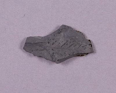 Отпечаток вайи в образце аргиллита неправильной формы. Край перышка рассеченный. Жилкование сетчатое. Аргиллит плотный, черный, однако отпечаток выделяется ещё более насыщенным черным цветом.