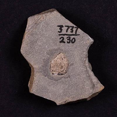 Отпечаток семени хвойного на породе. Порода представлена плотным алевролитом бежевого цвета.