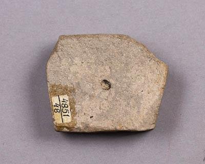 Округлый отпечаток семени. Частично сохранилась фитолейма, придающая отпечатку черный цвет. Порода представлена аргиллитом кремового цвета.