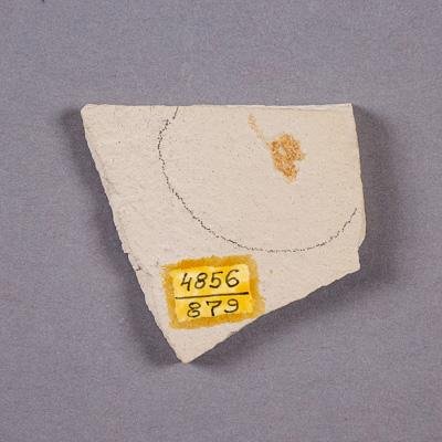 Отпечаток таллома водоросли в образце мергеля неправильной формы. Таллом пластинчатый, на ножке, рассечен на симметричные доли, лопасти с более мелкими лопастями второго порядка. Мергель плотный, светло-бежевого цвета. Отпечатки выделяются на фоне породы более темной окраской.