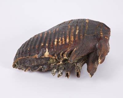Зуб (моляр). Карликовый мамонт. Mammuthus sp. Классификация: Хордовые Chordata, Позвоночные Vertebrata, Млекопитающие Mammalia, Хоботные Proboscidea, Слоновые Elephantidae, Мамонт Mammuthus sp.