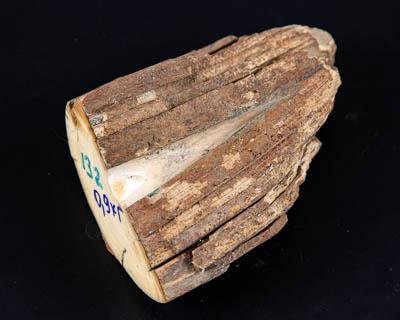 Зуб (бивень), фрагмент спила. Шерстистый мамонт. Mammuthus primigenius Blumenbach, 1799. Классификация: Хордовые Chordata, Позвоночные Vertebrata, Млекопитающие Mammalia, Хоботные Proboscidea, Слоновые Elephantidae, Шерстистый мамонт Mammuthus primigenius Blumenbach, 1799