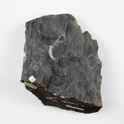 Отпечатки нескольких пластин на субстрате. Самая крупная пластина - пердняя среднеспинная (АMD), часть посткраниального кожного скелета. Скульптура пластины мелкобугорчатая (скульптура отпечатка мелкоямчатая). Остальные пластины, в основном, фрагментарны, их скульптура также мелкобугорчатая. Пластины выделяются на субстрате более тёмным оттенком. Субстрат представлен очень плотным мелкозернистым песчаником темно-серого цвета, местами охристого (окислы железа).