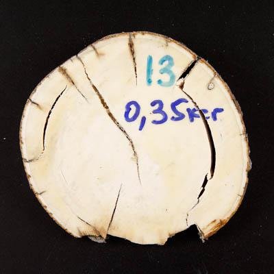 Бивень рассохся. Спил полирован с двух сторон. На спиле четко различимы линии Шрегера. Возраст: ad