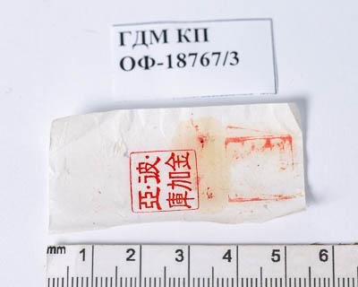 Лист рисовой тонкой бумаги с красным оттиском печати.