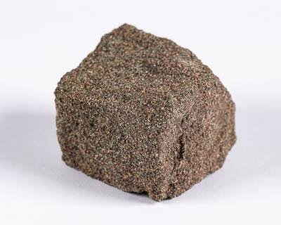 Образец вырезан в форме неправильного куба. Общий тон серовато-бежевый. Мелкозернистый, состоит из зерен разного цвета - зеленого, белого, черного и др. (разные минералы). Плотный. Равномернозернистый. Слоистость отсутствует.