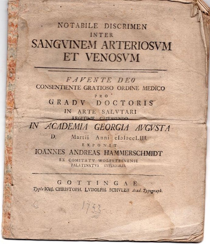 Брошюра. Notabile discrimen inter sangvinem arteriosum et venosum