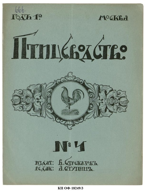 Четвёртый номер Журнала «Птицеводство» за 1914 г. Это специальный иллюстрированный журнал, выходивший 2 раза в месяц (1 и 15 числа). Публиковал статьи по всем вопросам разведения домашних и охотничьих птиц промыслового и любительского свойства.