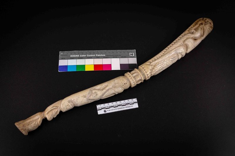 Старик с трубкой, морж и пеликен. Бакулюм моржа с резьбой.