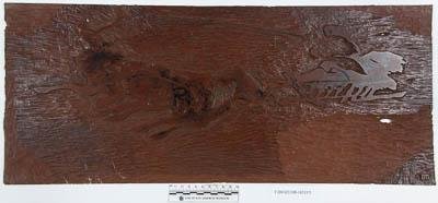 Доска из комплекта (7 досок) для создания цветной линогравюры. Горизонтальный формат. Оленья упряжка (погонщик на нартах и три оленя). К линогравюре «Молния» (оф-10875).