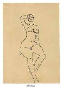 Сидящая обнаженная, положившая правую руку на голову. Набросок