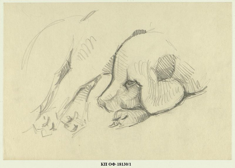Набросок лежащей енотовидной собаки. Рисунок