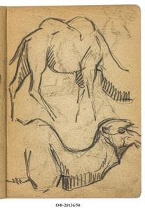 Наброски верблюда. На обороте - наброски головы ламы. Лист из альбома