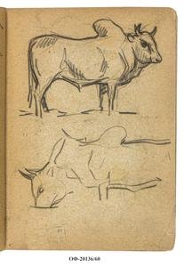 Наброски зебу. На обороте наброски гамадрила и макак-резусов. Лист из альбома