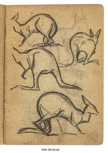 Четыре наброска кенгуру. Лист из альбома