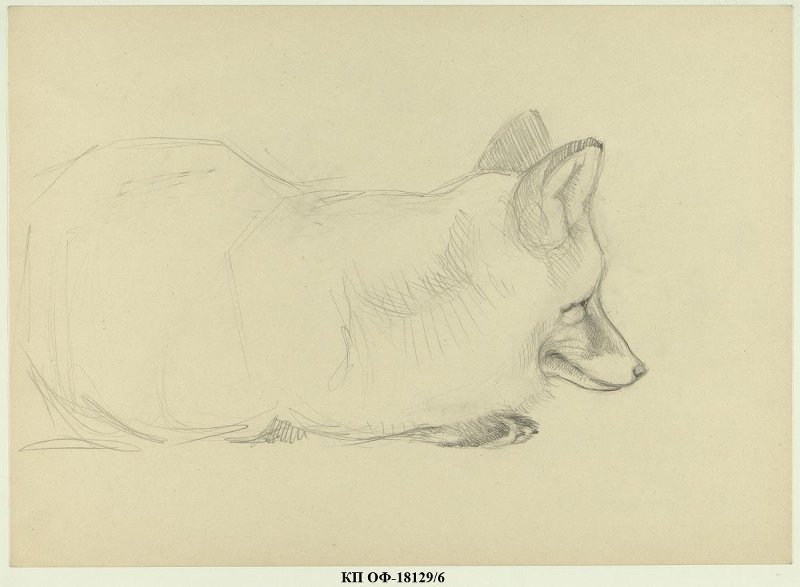 Лежащая лисица. Рисунок