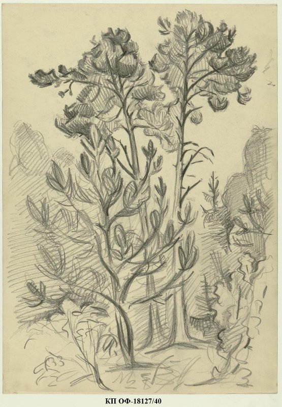 Зарисовка деревьев. Северный Кавказ. Рисунок