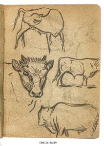 Наброски бычка. На обороте - наброски зебу. Лист из альбома